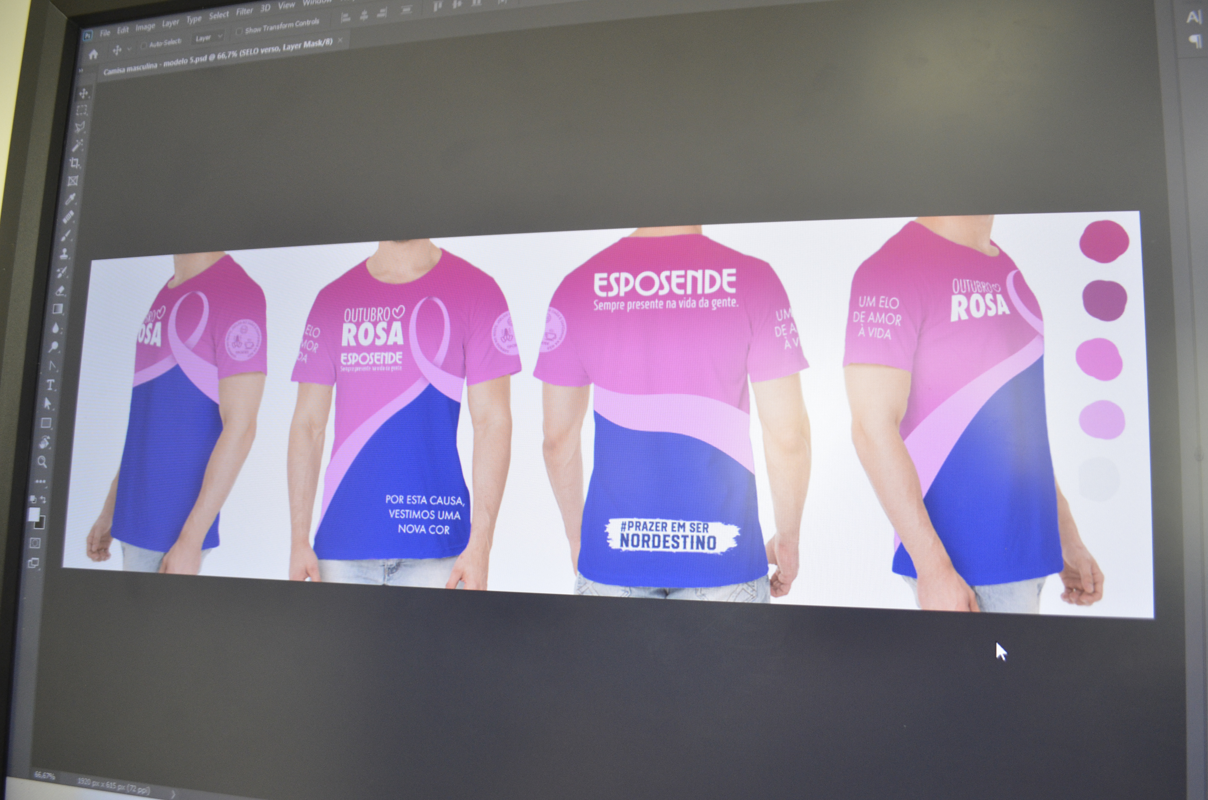 Desenvolvemos a arte para impressão de camisas com o tema Outubro Rosa.